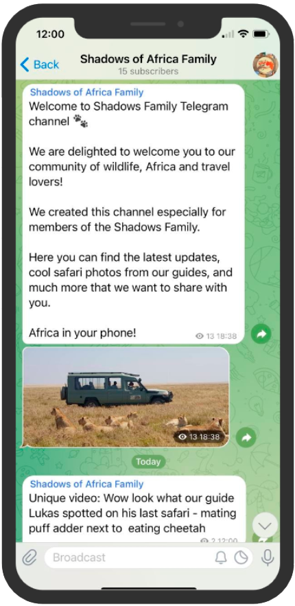 Via newsletters and our Telegram channel, we share the latest news, our very best wildlife photos, and videos gathered by our guides straight from safari.